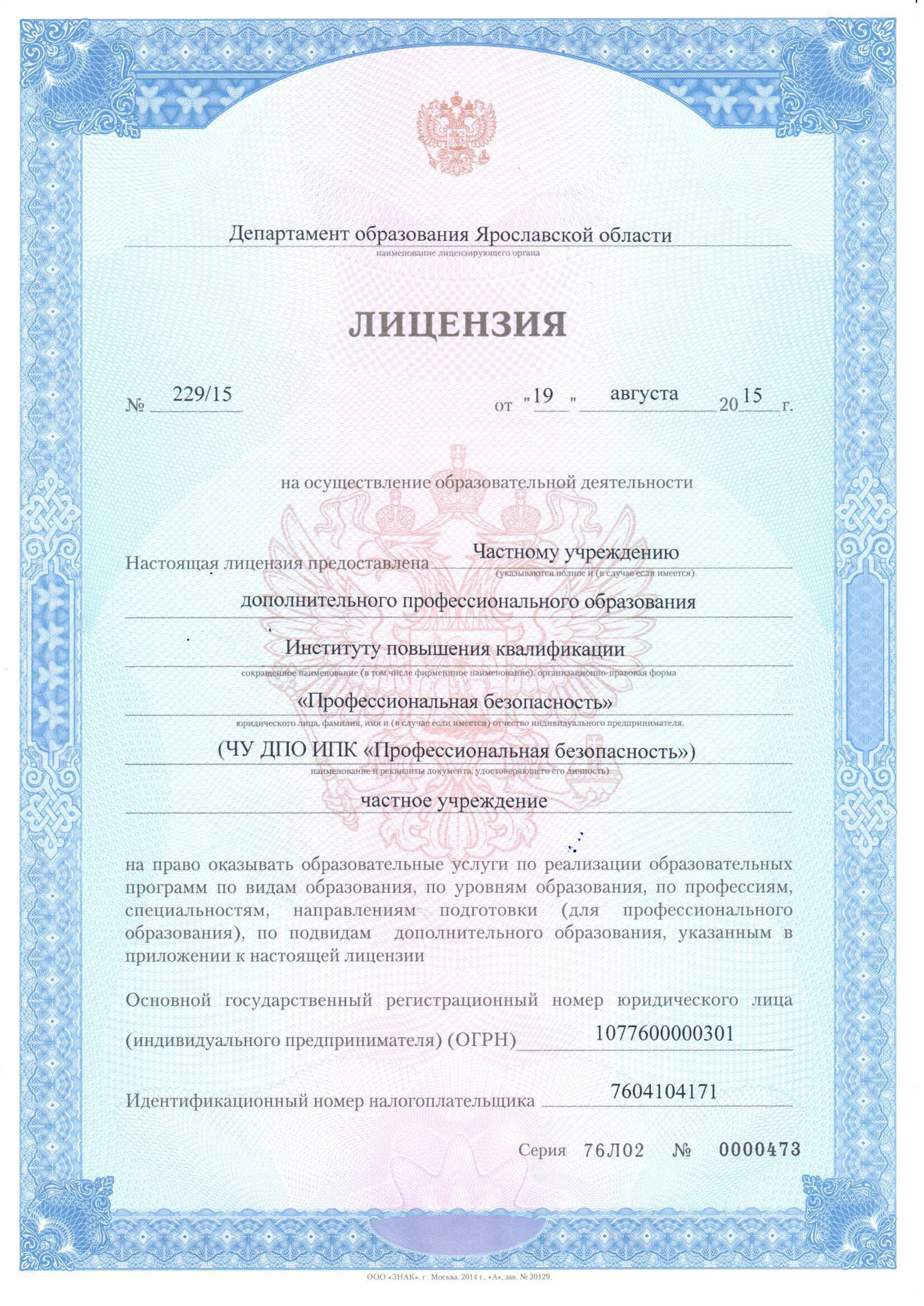 Всё обучение проводится строго в соответствии с законодательством РФ