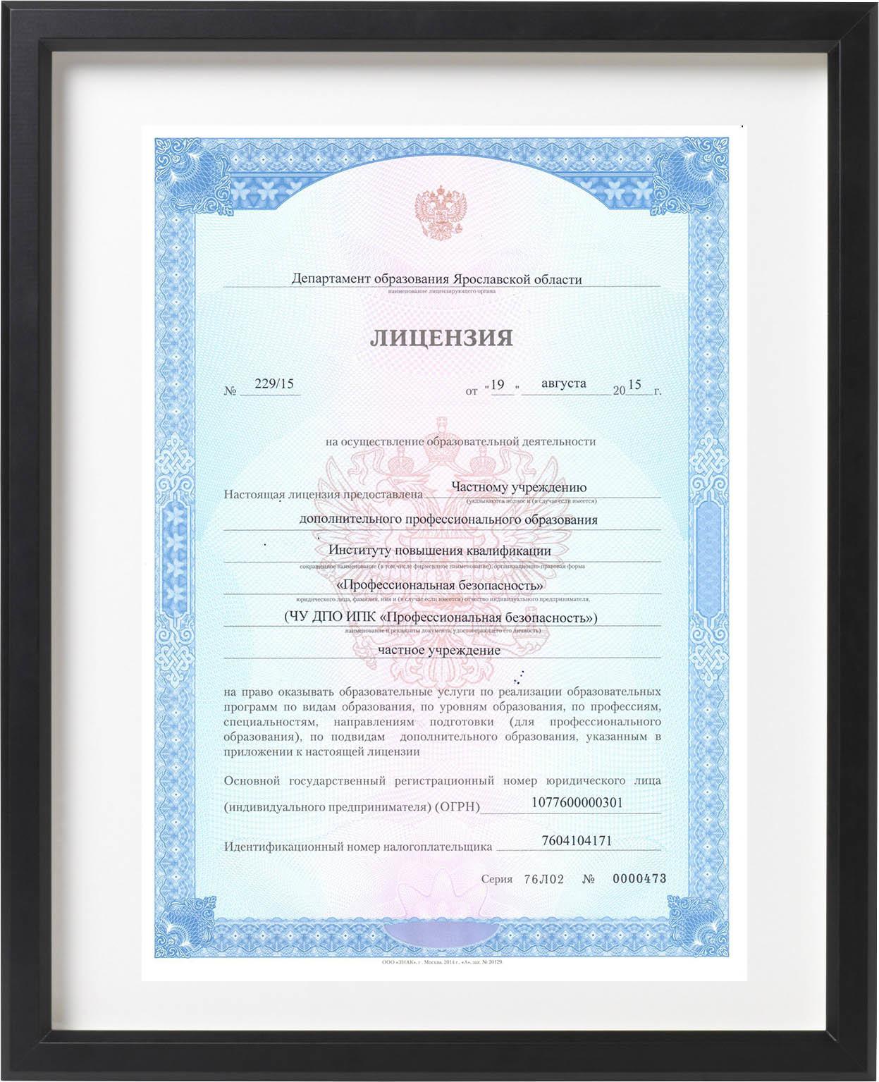 Всё обучение проводится строго в соответствии с законодательством РФ